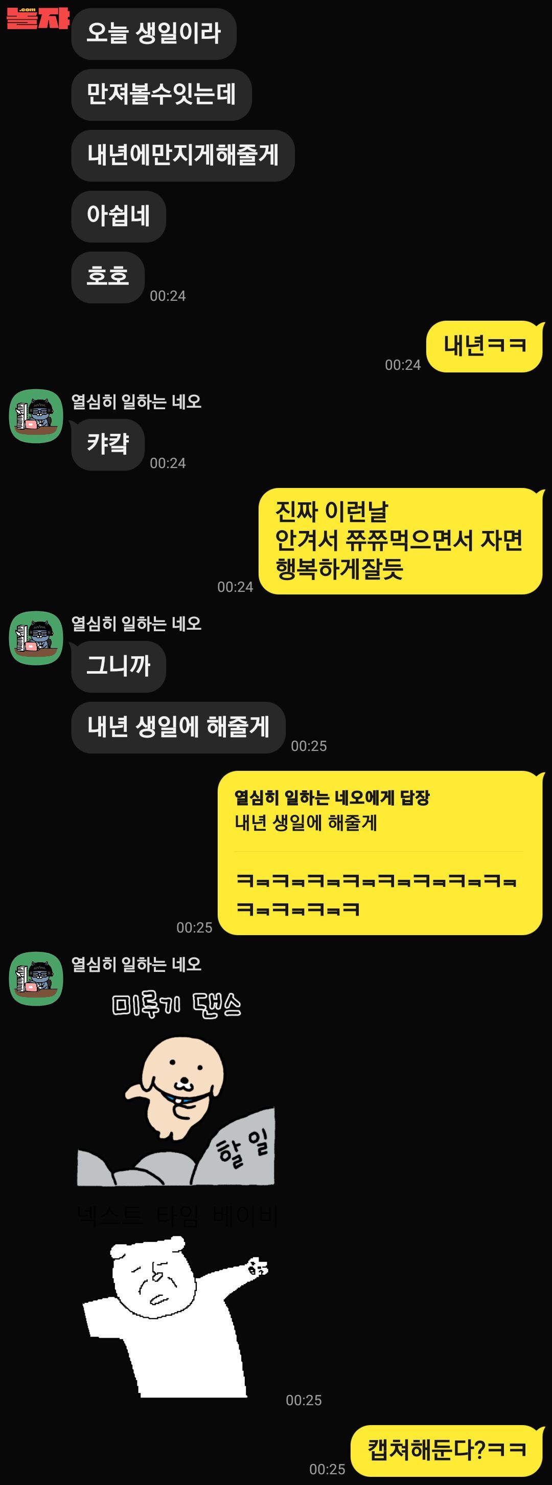 31일이 생일이었는데 여사친이 보내준 카톡 대화내용 공유합니다ㅋㅋ
